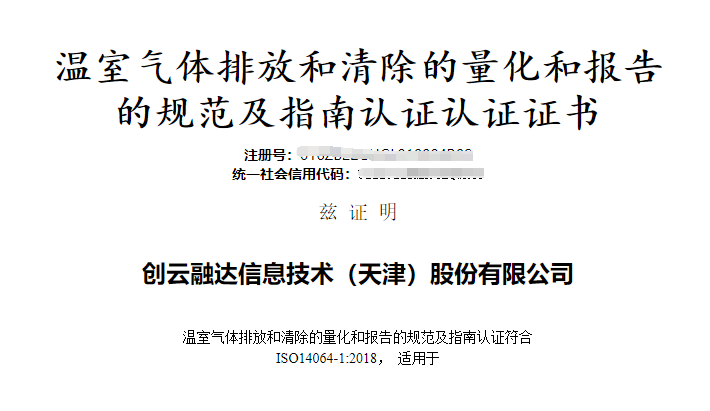 踐行綠色環(huán)保理念,創(chuàng)云融達通過BCC溫室氣體核查!