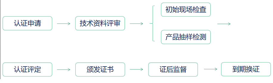 綠色產(chǎn)品認(rèn)證的流程包括:申請(qǐng)——技術(shù)資料評(píng)審、受理——現(xiàn)場(chǎng)檢查、產(chǎn)品抽樣評(píng)審——認(rèn)證決定——證書發(fā)放——證后監(jiān)督——到期換證