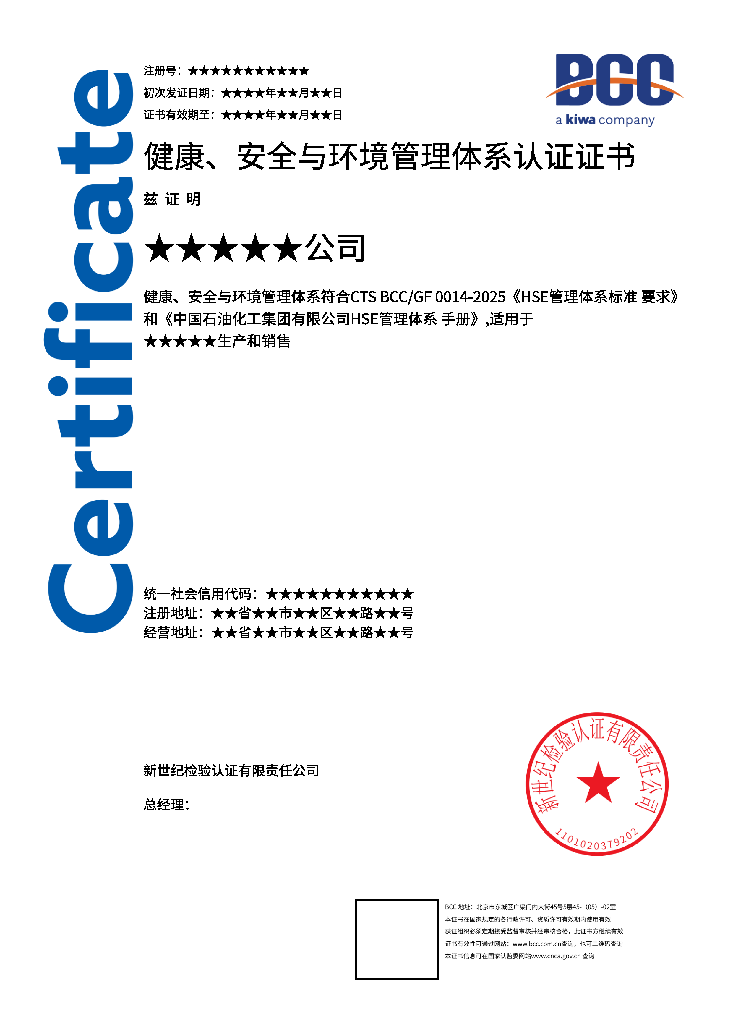 本頁涉及的認證服務中均有對應的《認證實施規(guī)則》,BCC擁有其最終解釋權。任何組織及個人未經(jīng)BCC許可,不得以任何形式全部或部分使用(法律要求除外)認證相關信息。如需獲取相關實施規(guī)則請用以下方式聯(lián)系獲?。弘娫挘?10-58579316 郵箱:fwjs@kiwa.cn