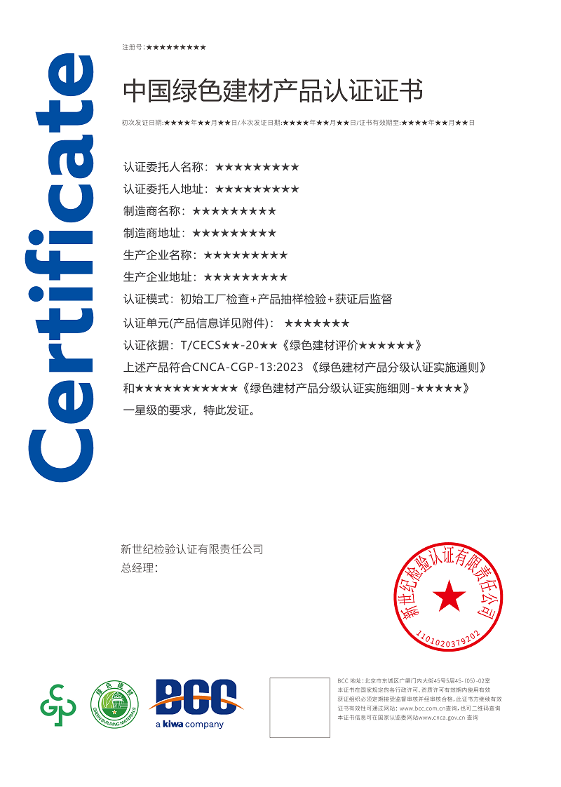 綠色建材產(chǎn)品分級(jí)認(rèn)證按照中國(guó)工程建設(shè)標(biāo)準(zhǔn)化協(xié)會(huì)發(fā)布的《綠色建材評(píng)價(jià)標(biāo)準(zhǔn)的要求》,將認(rèn)證結(jié)果由低至高分為一星級(jí)、二星級(jí)和三星級(jí)。