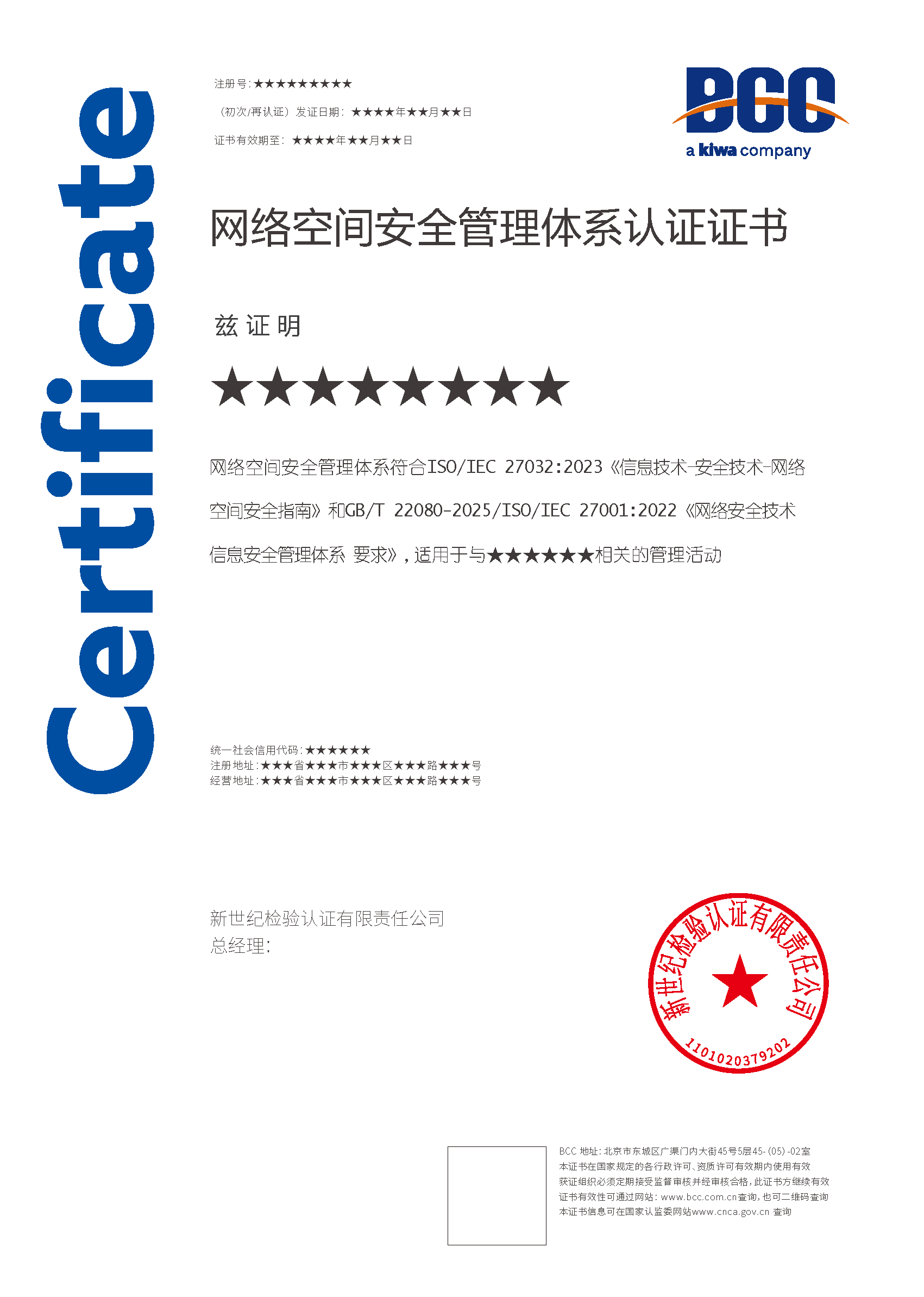 本頁涉及的認(rèn)證服務(wù)中均有對應(yīng)的《認(rèn)證實(shí)施規(guī)則》,BCC擁有其最終解釋權(quán)。任何組織及個(gè)人未經(jīng)BCC許可,不得以任何形式全部或部分使用(法律要求除外)認(rèn)證相關(guān)信息。如需獲取相關(guān)實(shí)施規(guī)則請用以下方式聯(lián)系獲取:電話:010-58579316 郵箱:fwjs@kiwa.cn