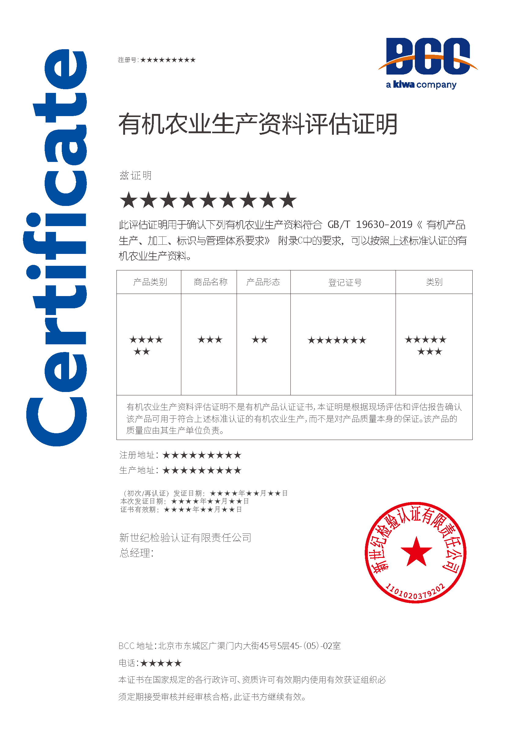 5、認(rèn)證委托人及其相關(guān)方一年內(nèi)未因除上述所列情形之外其它情形被認(rèn)證機(jī)構(gòu)撤銷(xiāo)有機(jī)產(chǎn)品認(rèn)證證書(shū)。