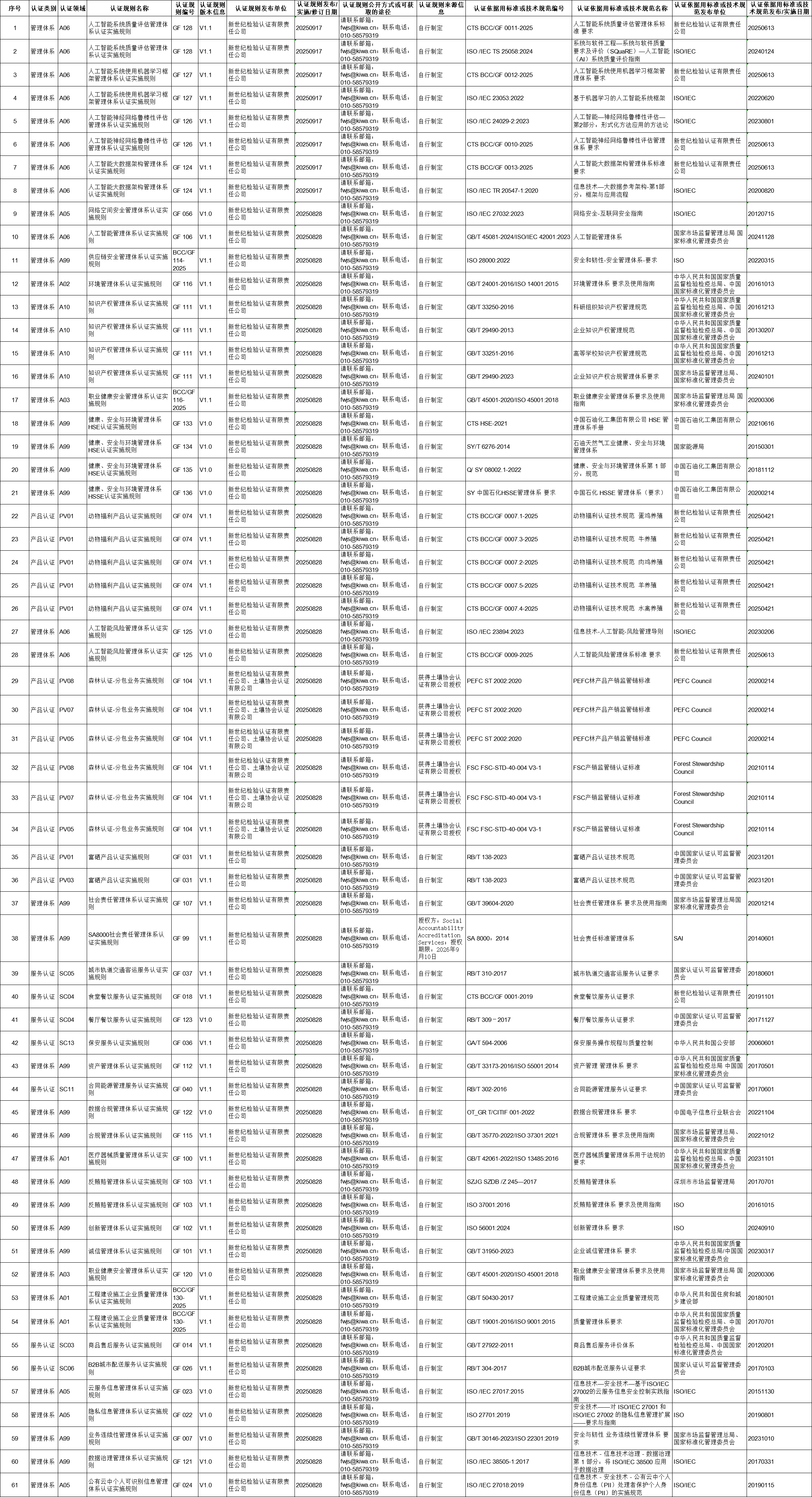 本公司實施的認(rèn)證規(guī)則均已按照《國家認(rèn)監(jiān)委關(guān)于加強認(rèn)證規(guī)則管理的公告》(2025年第9號)要求備案。如需詳細(xì)內(nèi)容請用以下方式聯(lián)系獲取。電話:010-58579319 郵箱:fwjs@kiwa.cn