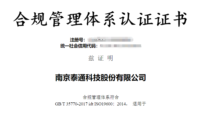 此次審核的通過,使泰通科技更加規(guī)范合規(guī)管理過程、建立合規(guī)經(jīng)營價值觀、有效防范合規(guī)風(fēng)險、減少違法行為發(fā)生。